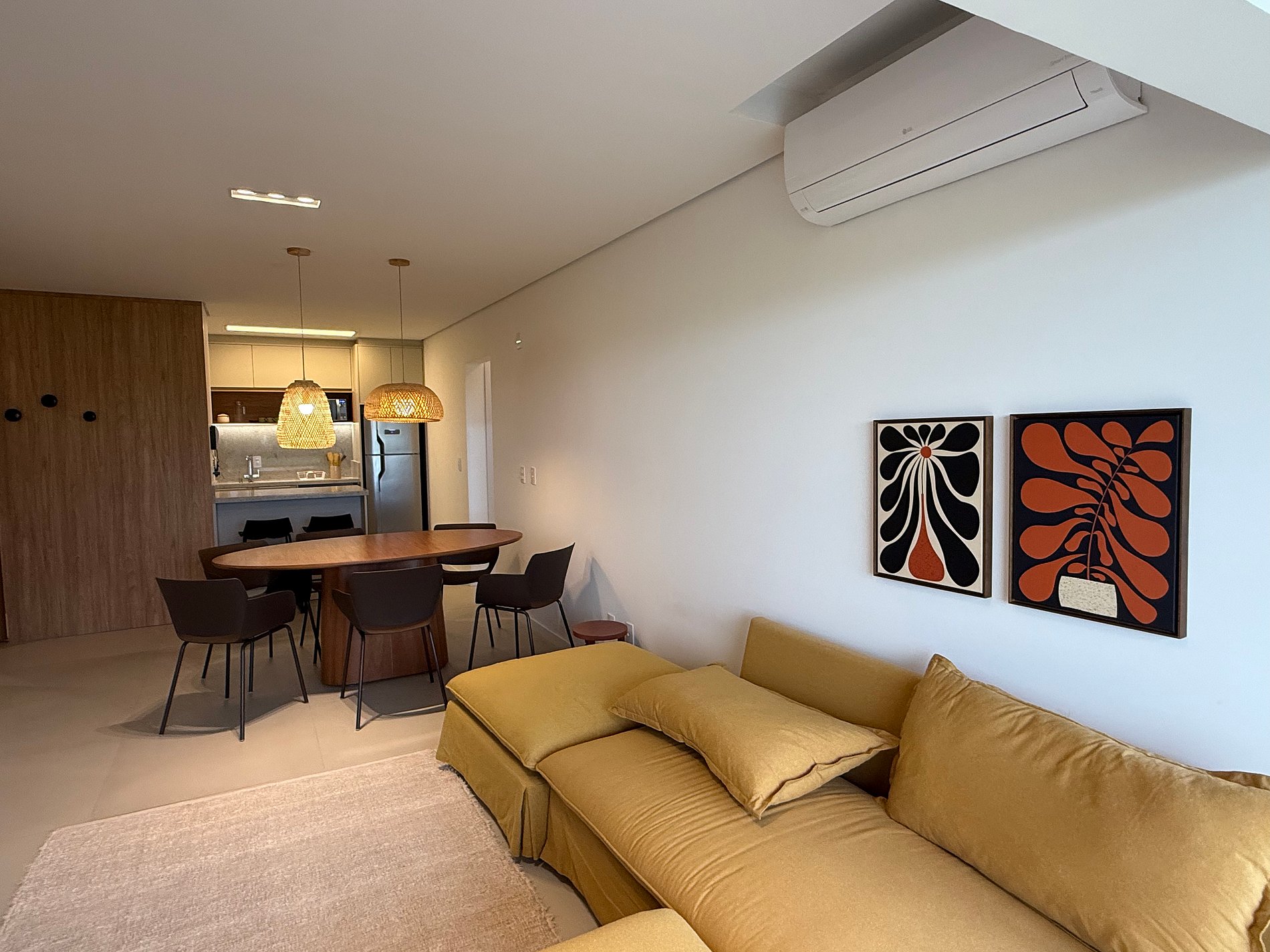 As unidades Oli Homes no Porto Ventura contam com 83 m² muito bem distribuídos, pensados para conforto, funcionalidade e uma experiência sem improvisos. São 2 suítes com ar condicionado, lavabo, ambientes amplos e uma atmosfera leve, descontraída e acolhedora — do jeito que acreditamos que morar ou se hospedar perto do mar deve ser.