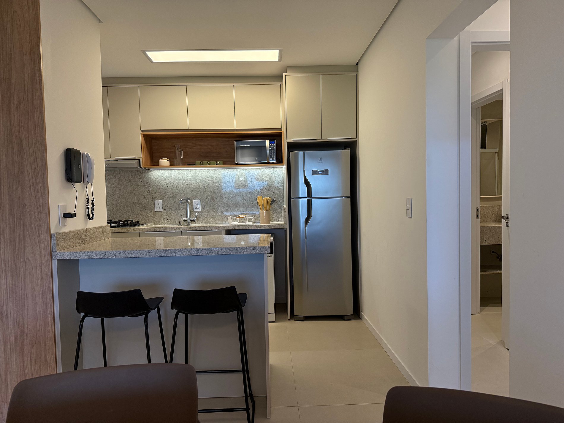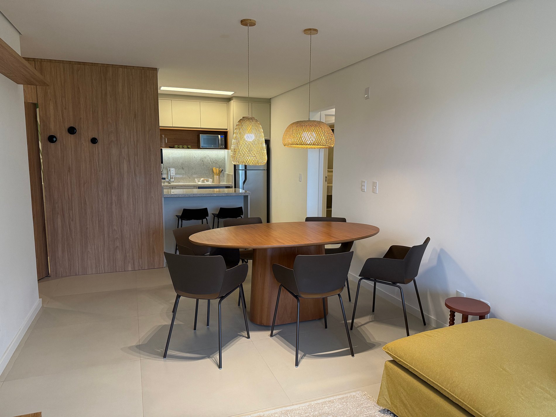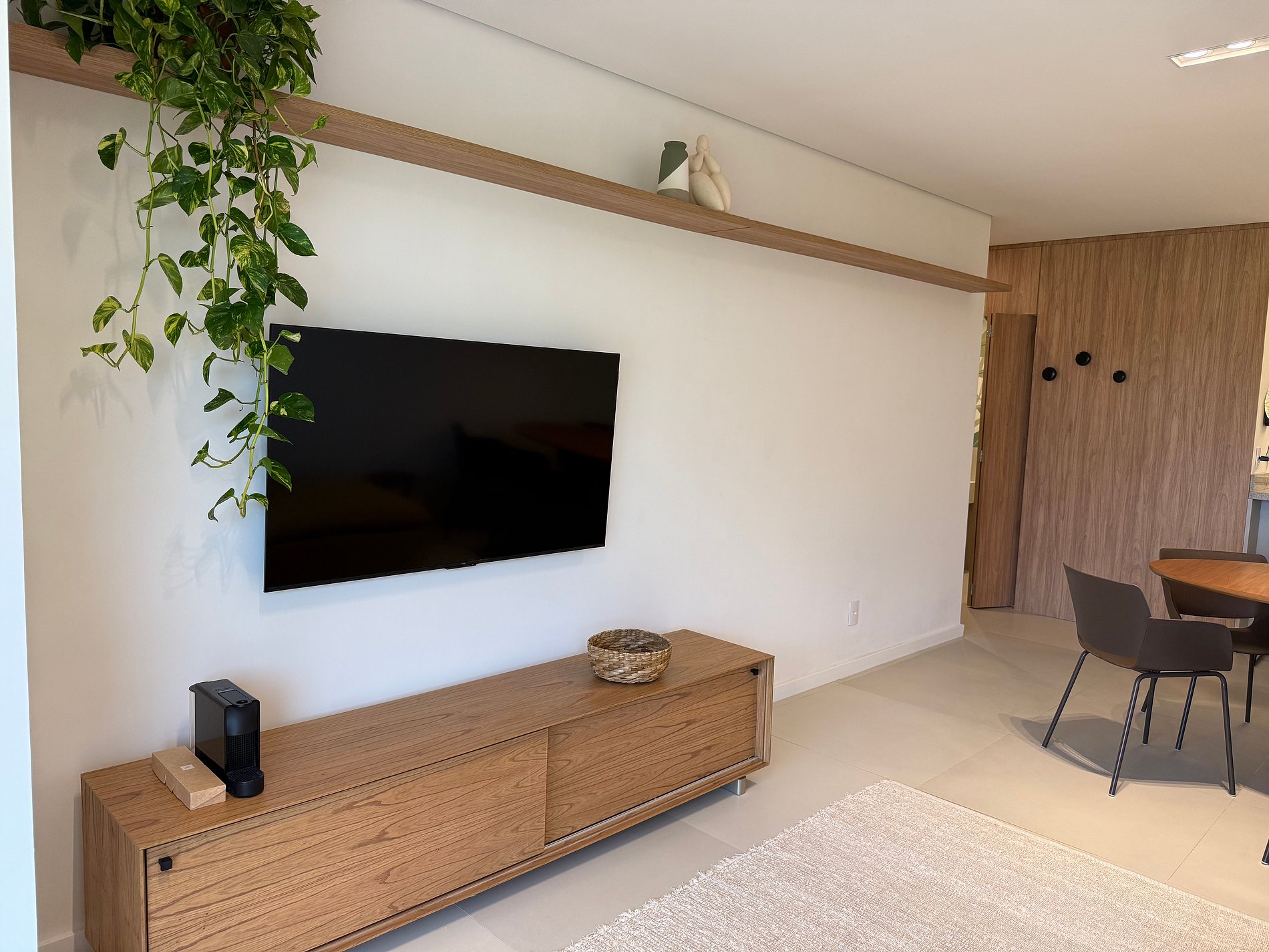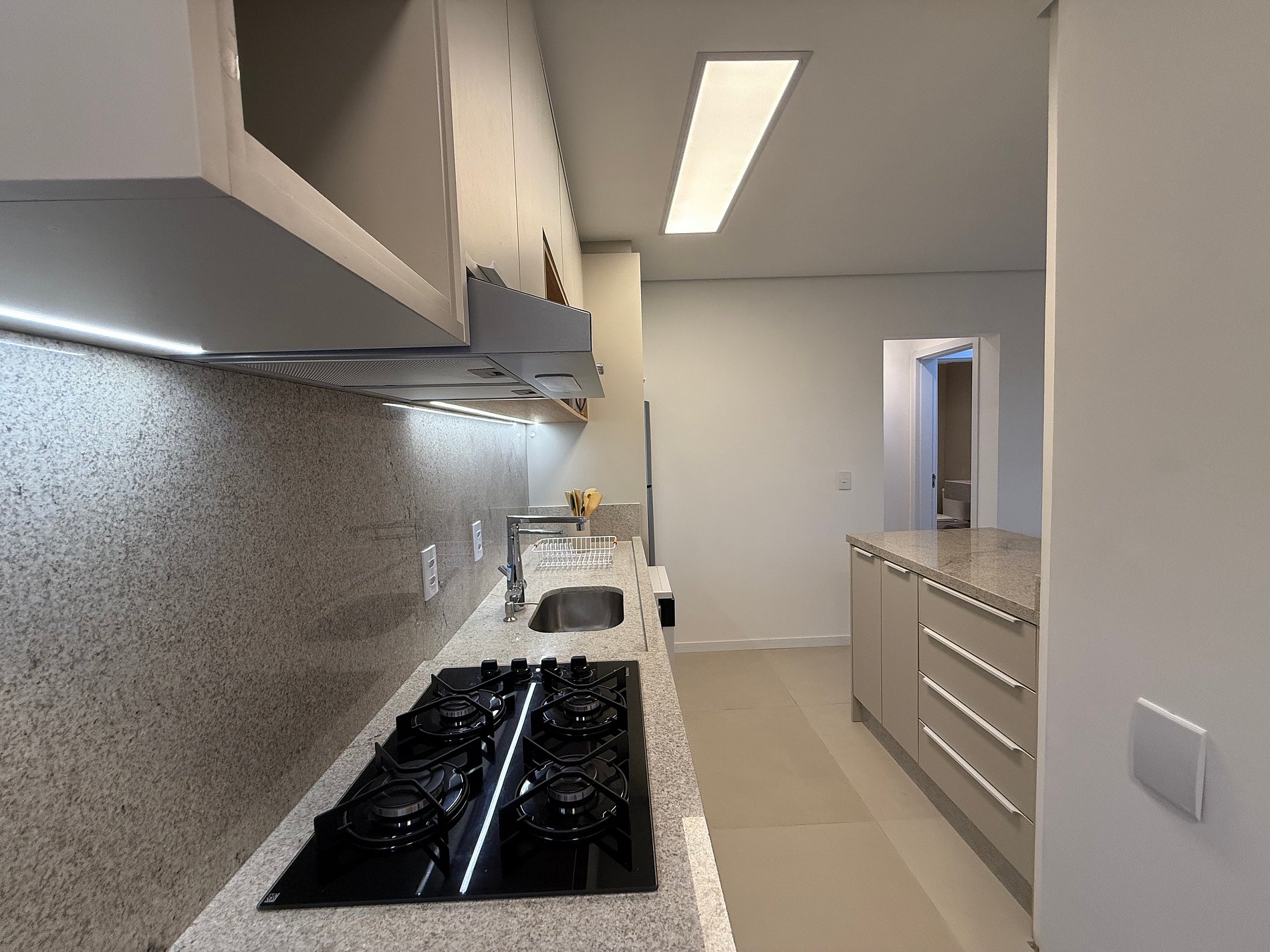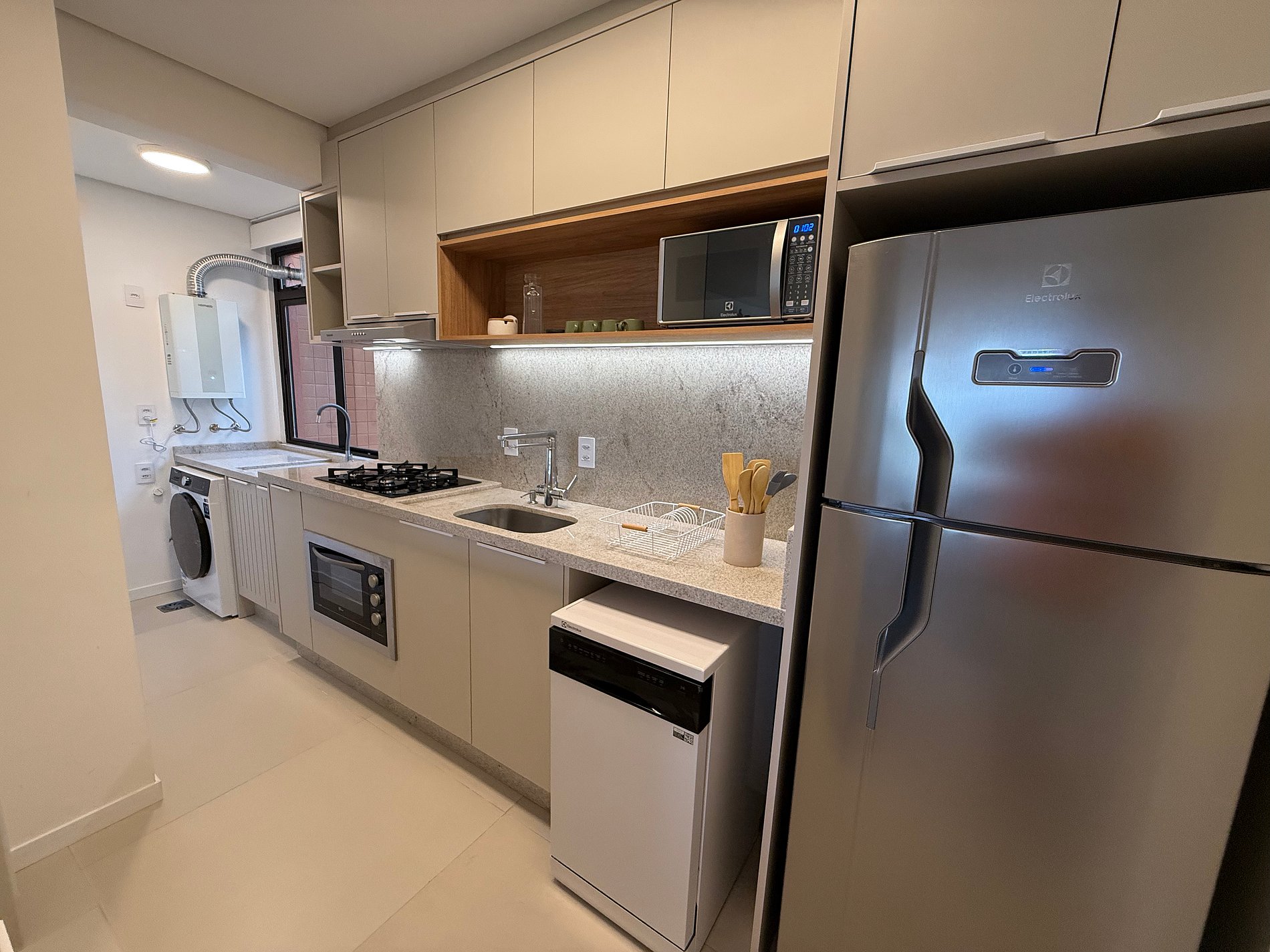 Totalmente reformado em 2025, o apartamento foi remodelado com foco em praticidade e bem-estar. A cozinha é completa, equipada com lava-louças, lava e seca, filtro de água para beber, além de utensílios de qualidade e uma Nespresso, porque conforto também mora nos detalhes do dia a dia. A área social integra-se à churrasqueira, criando um espaço perfeito para estar junto, sem pressa.